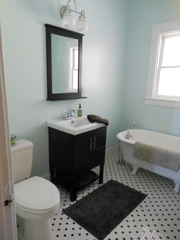 Here it is! All done -- minus a towel rack and curtains. It's my new favorite room in the house. I find myself walking by several times a day just to sneak a peek.